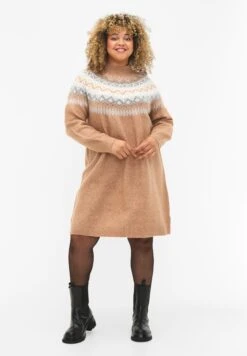Zizzi Patterned With Long SleevesAbito In MagliaChipmunk Mel Comb Donna Vestiti Z1721C1J8-O11